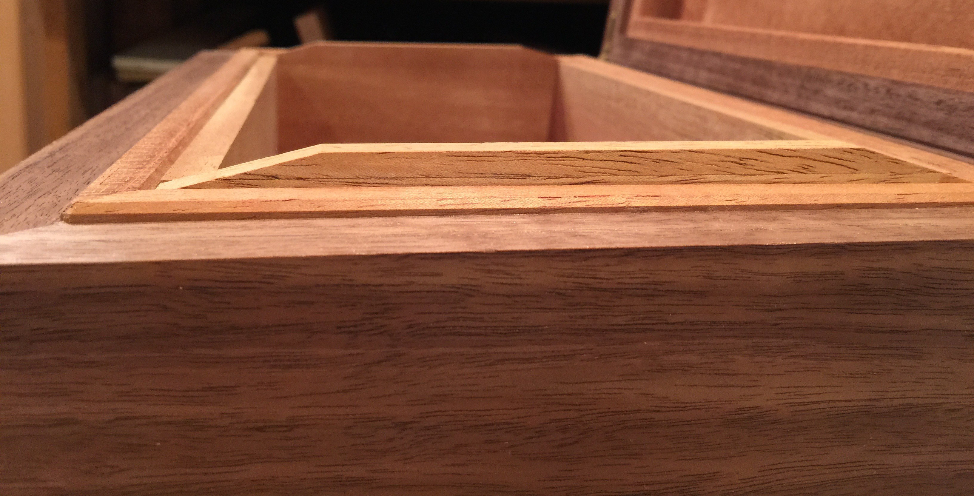 The inside of the box is basically complete, less the humidifier. Next I can begin French polishing the exterior of the box.